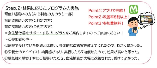 STEP2:検査結果に応じたプログラム(食生活改善をサポートするプログラム等)の実施。