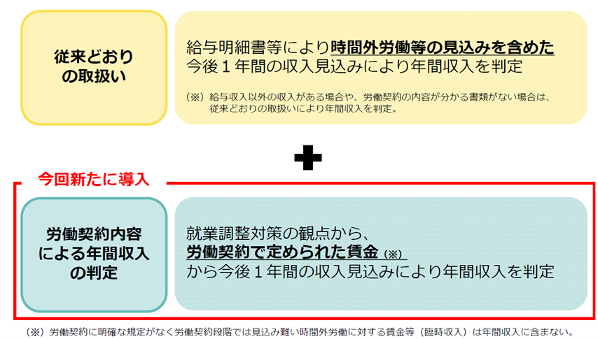 ・労働契約内容による年間収入の判定は、認定対象者から提出があった場合にのみ判定に使用します。